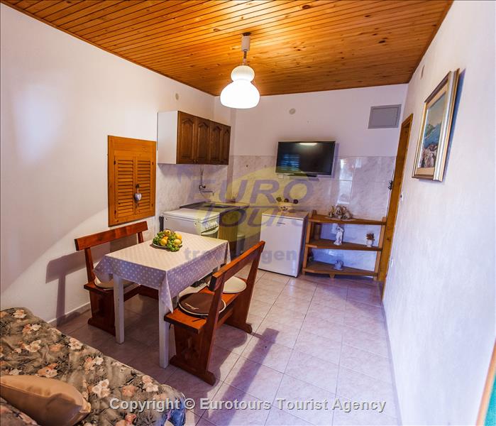 "At Granny" is a studio apartment which consists of a bedroom, bathroom, kitchen and dining area with a sofa (extra bed) which are linked into a single unit. Capacity of "At Granny" is a 2 +2 and it's air conditioned.