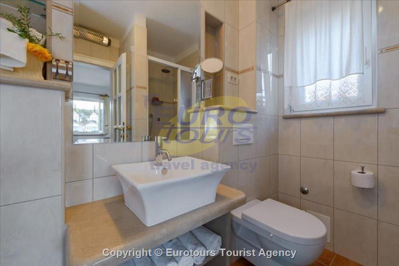 Living room is separated by French doors from a beautifully arranged terrace with garden furniture, a perfect place to have a morning coffee in the shade. In this area, there is an outdoor grill where you can prepare various Dalmatian specialties. Special highlight is sauna where you will be able to fully relax and enjoy. Near the entrance to the sauna there are 2 showers, one of which is designed as a waterfall. Here is another terrace with garden furniture and table tenis.