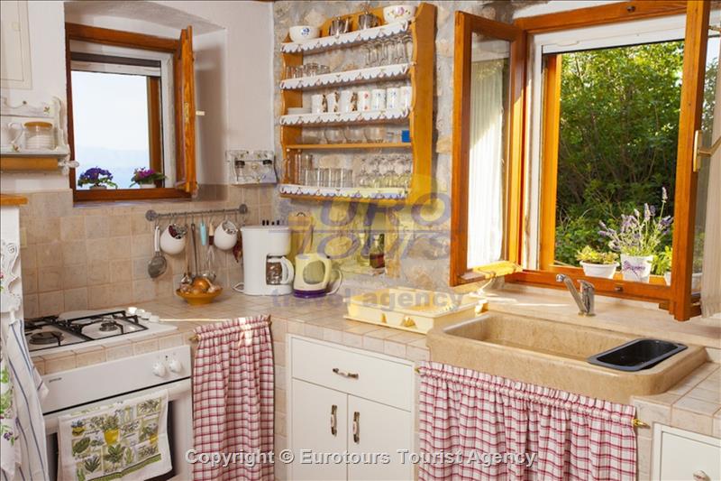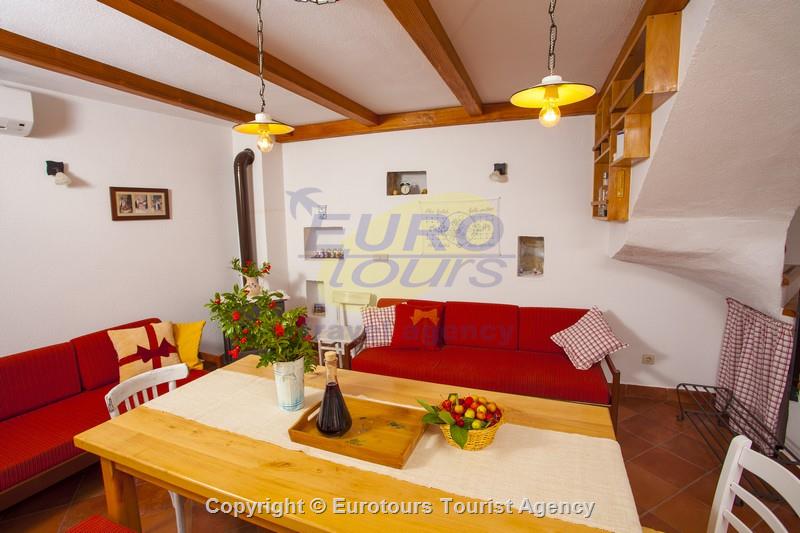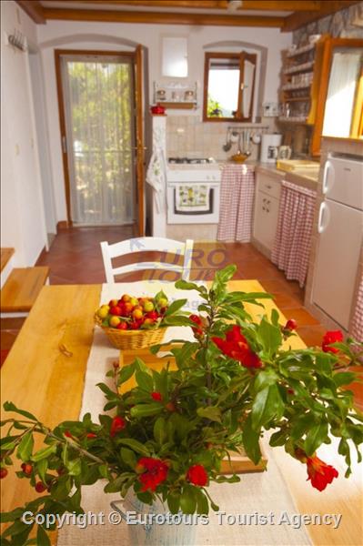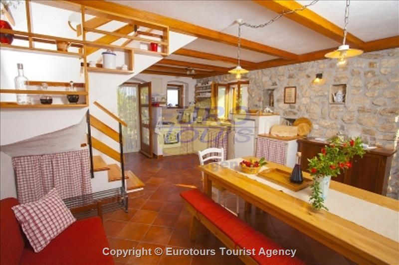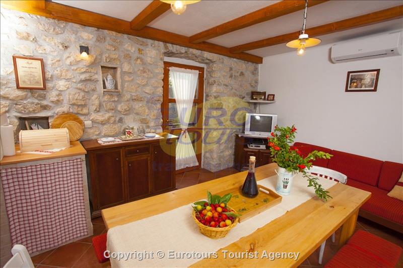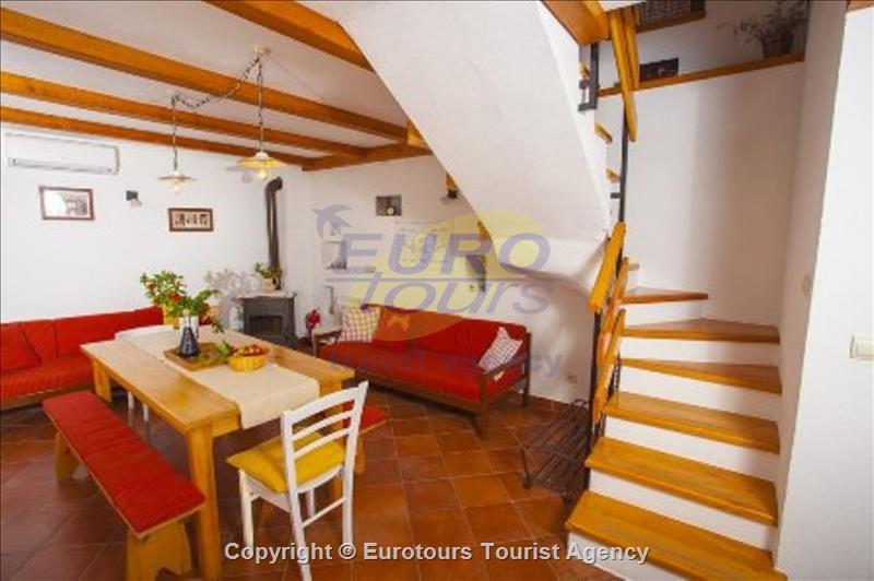 Stone house is rebuilt 5 years ago and this is the 3 rd season that is rented to guests. It provides 3 star rating accomodation through the whole year.There are 2 floors with 80 square meters of living space.On the first floor there is living room, dining room, kitchen and bathroom. Most of the furniture is new as well as the kitchen appliances. On the second floor there are two bedrooms for maximum five persons, one is for 3 persons and other with 2 single bed.