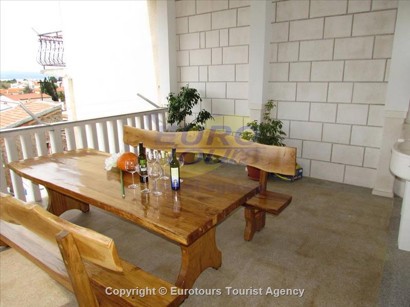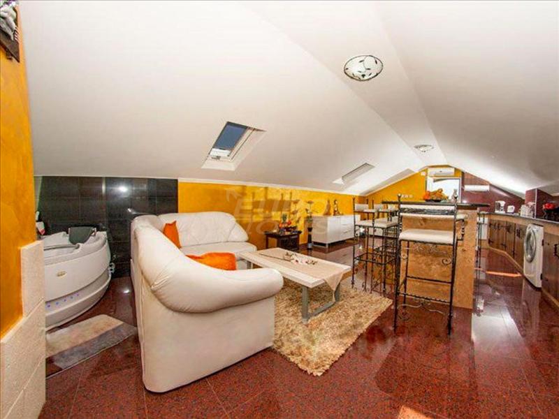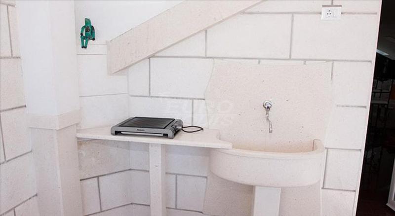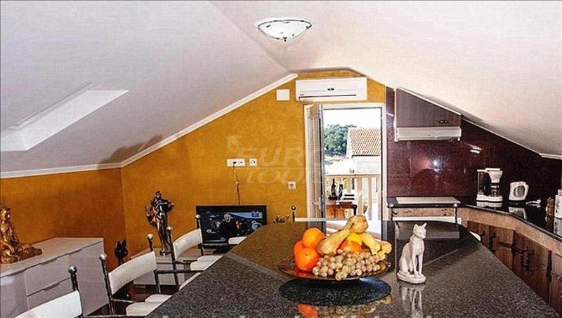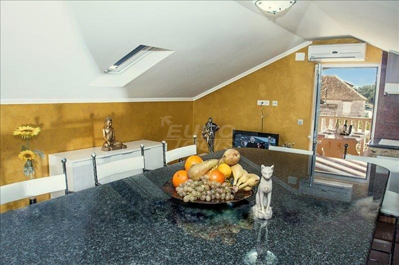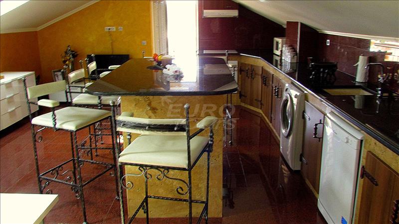 Modern equipped kitchen with dining area and jacuzzi access to the large covered terrace which is ideal for summer evenings. It partialy overlooking the sea and the city and is equipped with large solid wood table and benches. One bathroom has a hydromassage shower. One bedroom, the living room and a common room are equipped with three air conditioning