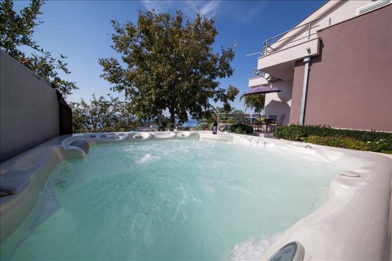 The plot of 700 m2 is surrounded by olive trees, palm trees, Mediterranean green and flowers. It has heated around swimming pool, Jacuzzi for 5 people, outdoor shower, children's playground, table tennis, table football. Sauna... Whirpool... GYM room.