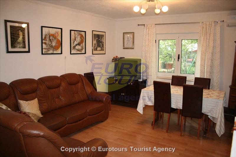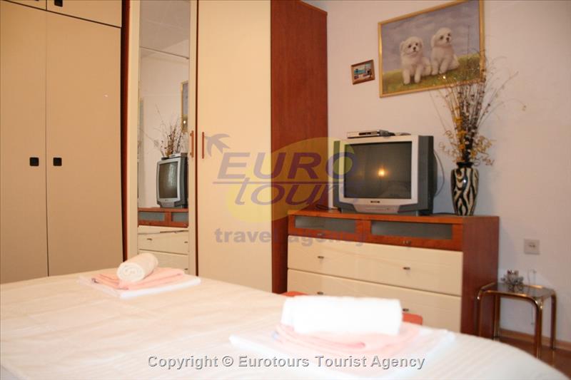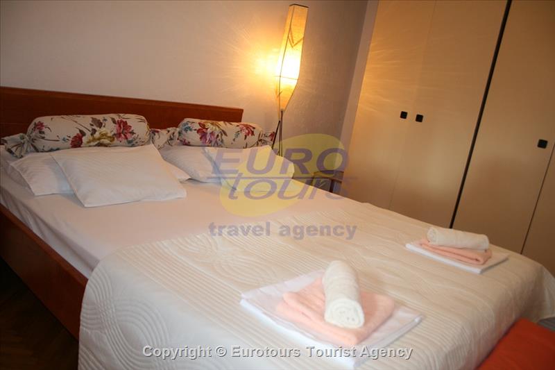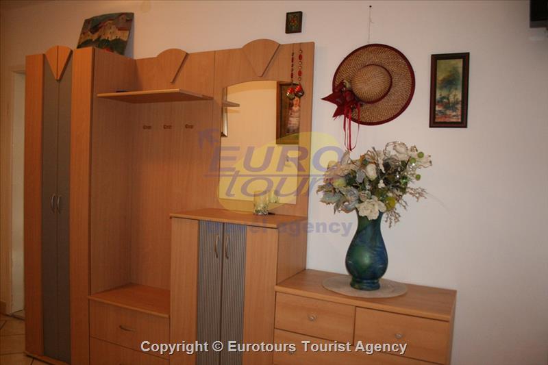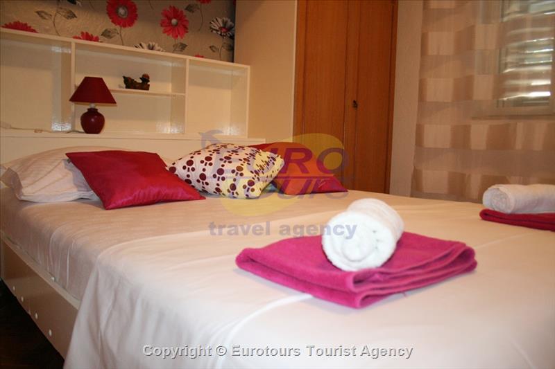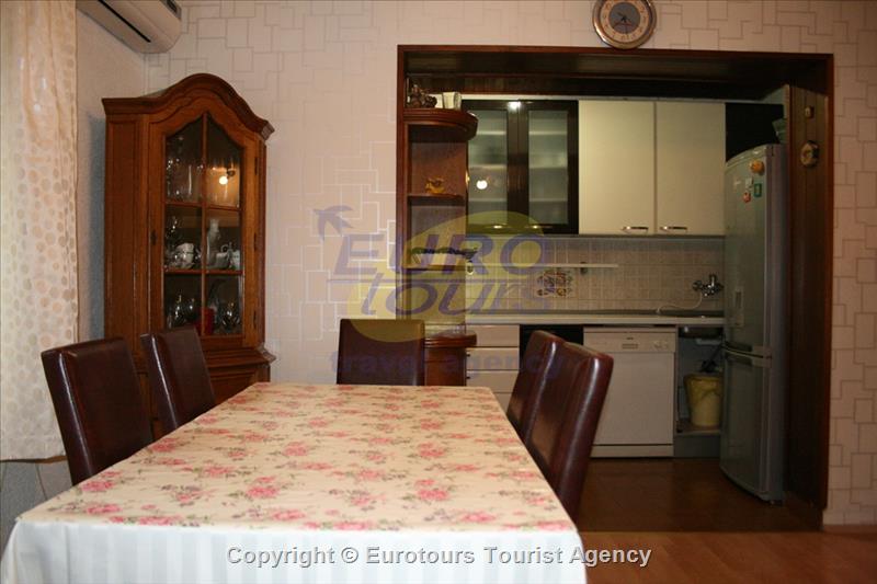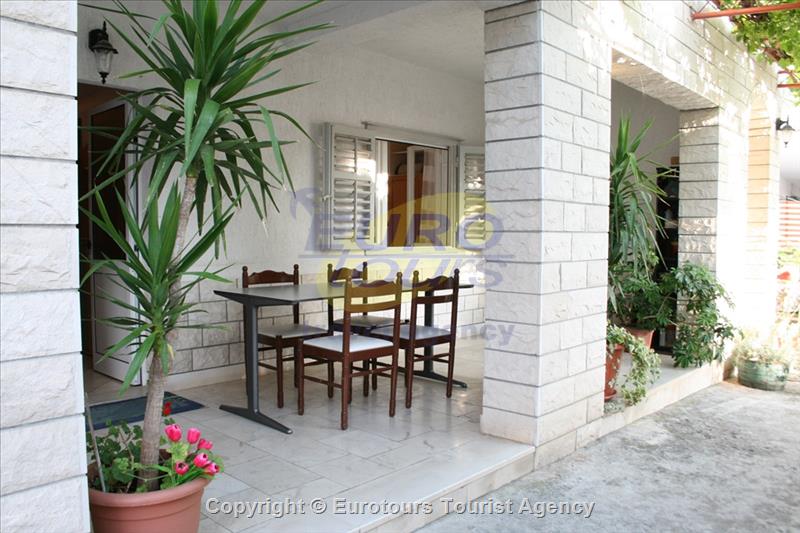 Terasse in a front. The apartment is equipped with air confitioning and all that you ned for a pleasant holiday.