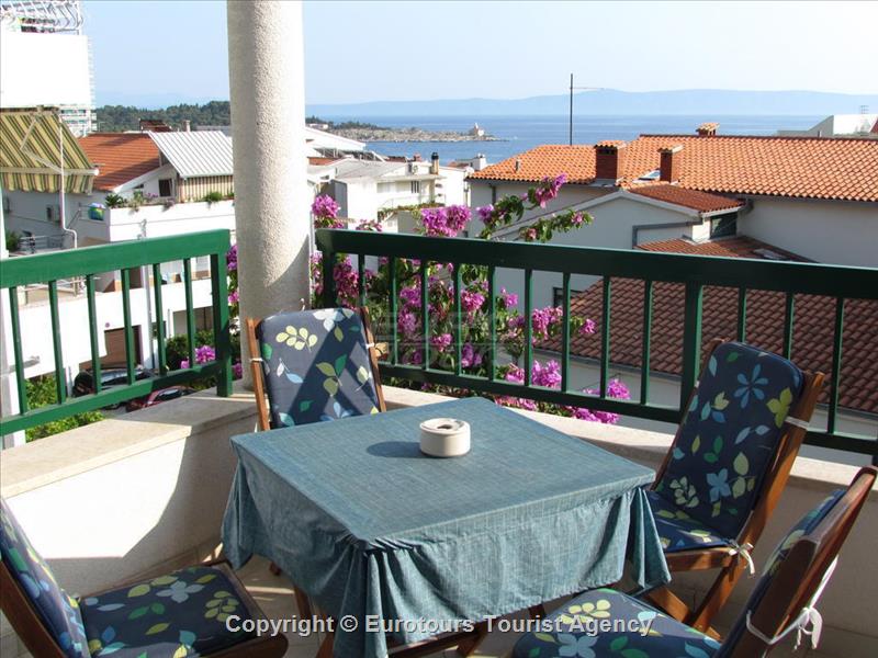 Balcony: Large balcony with garden furniture, facing south overlooking the sea and islands.