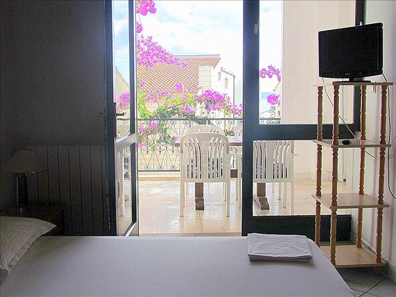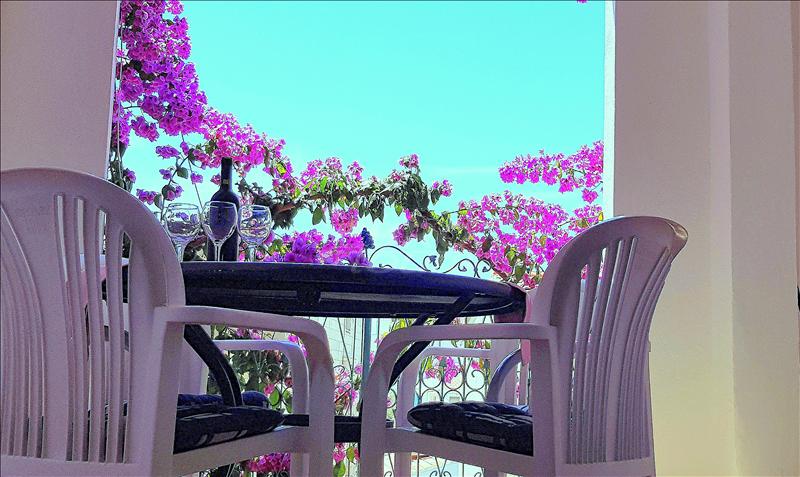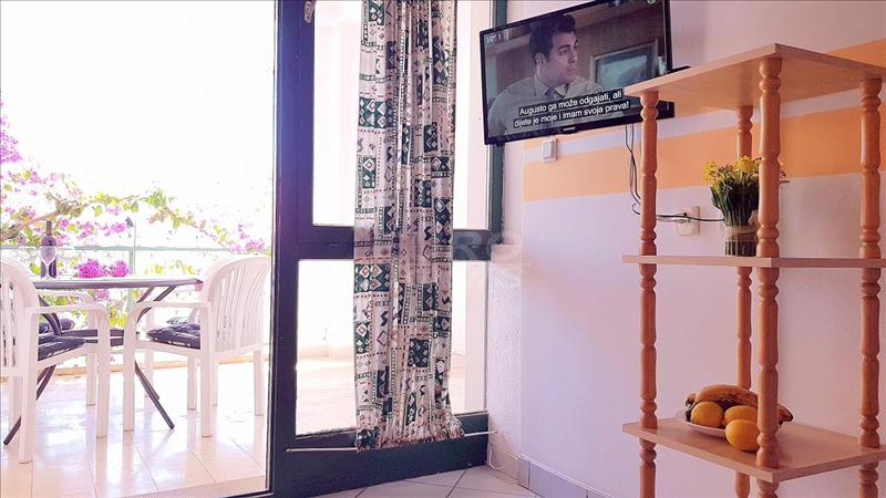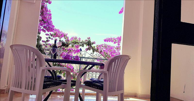 Air-conditioned apartment with satellite TV and a furnished balcony offering partial sea view.