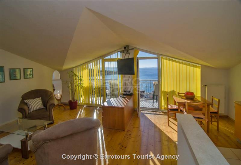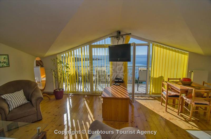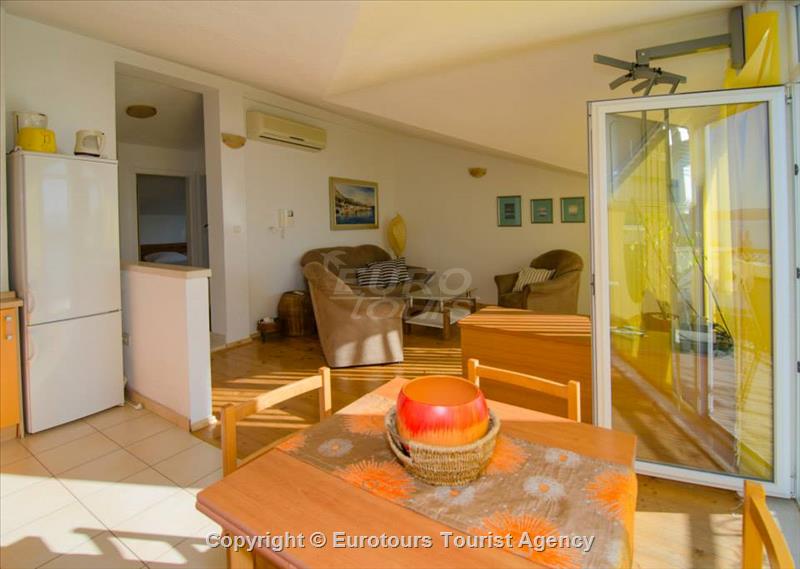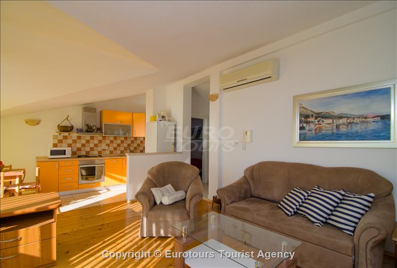 Apartment No 4(for 4-6 people) luxury apartment with two small bedrooms, a bathroom with washing machine, living room with balcony with a beautiful view of the sea and the islands of Brac and Hvar.Udaljen is only 200 m from the center and 50 m from the beach, facing south and always sunny. The apartment is furnished with all the modern amenities for a pleasant holiday gostiju.Apartman 55 qm 3 rd floor. Satellite TV, air conditioning, internet, kitchen (4 hotplates, oven, periliza dishwasher, microwave, stove, toaster,freezer)