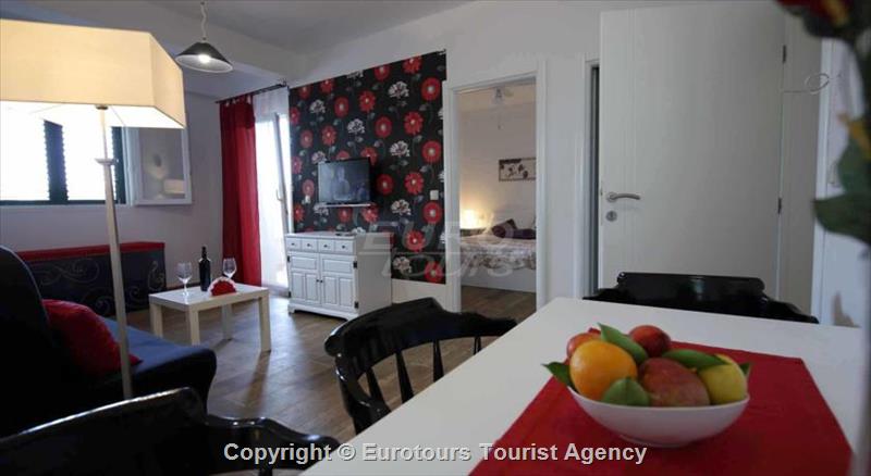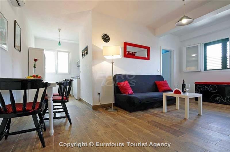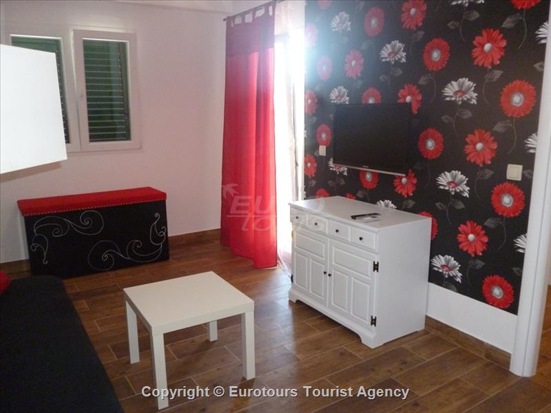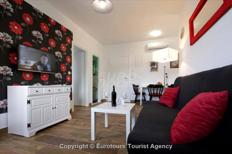 Living room: SAT-TV + WiFi - internet + sofa bed for 2 people + air conditioning, kitchen and dining room into the living room table and chairs + balcony.