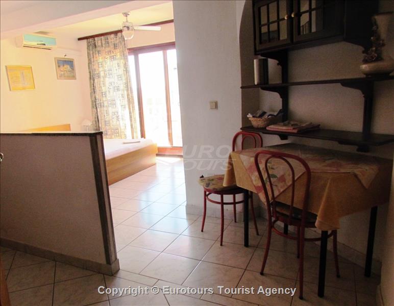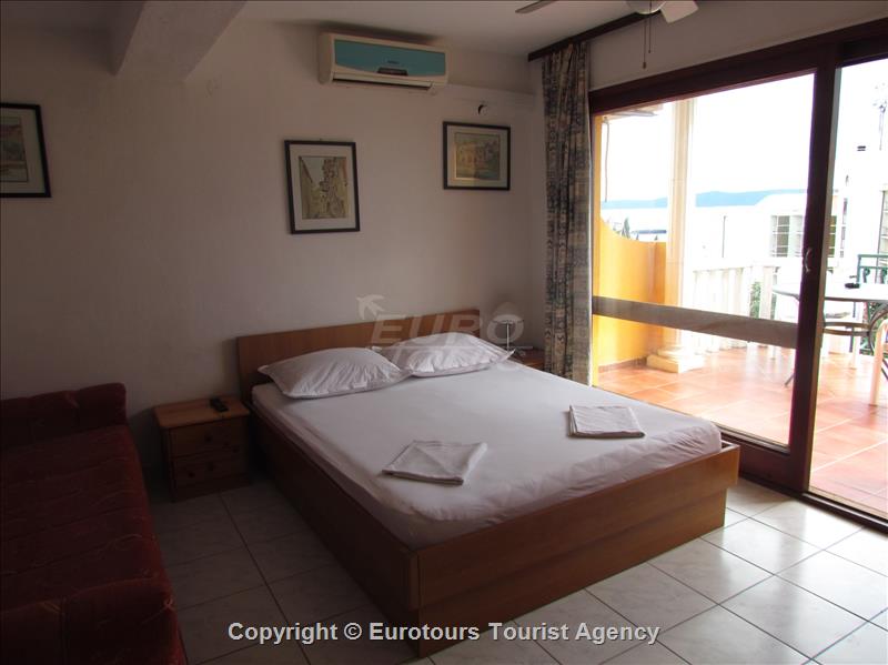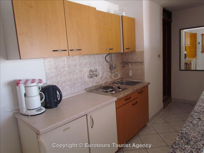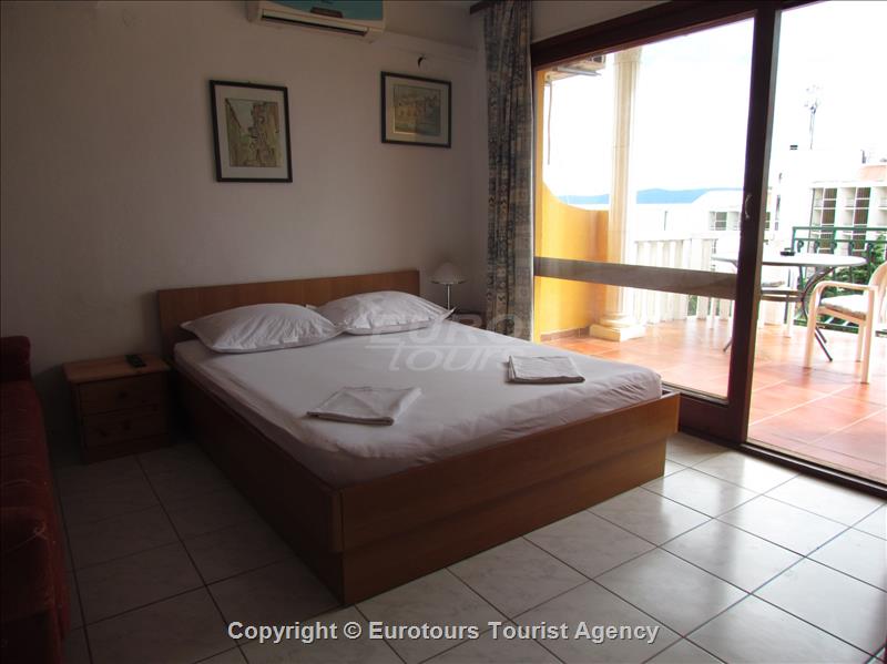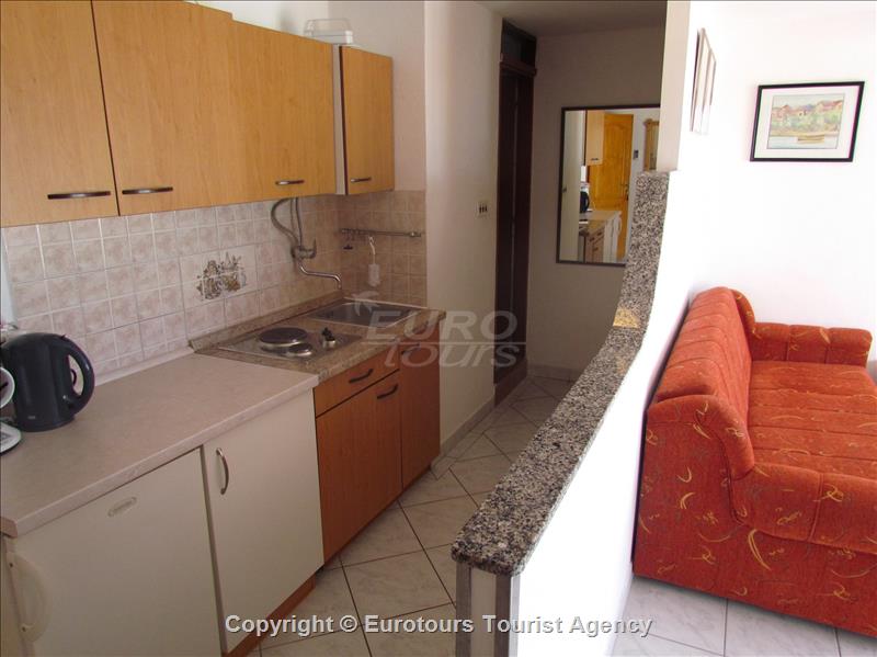 Your holidayapartment: 1 room (studio Apartement), 20 sqm, 2+1 persons. Air conditioning. Entrance on the 2 nd floor, kitchen living. and1 double bed. Cooking in the kitchen – living with refriger and coffeemachine. Bathroom with shower and WC. Other facilities: Internet access (WLAN). Television available by satellite.