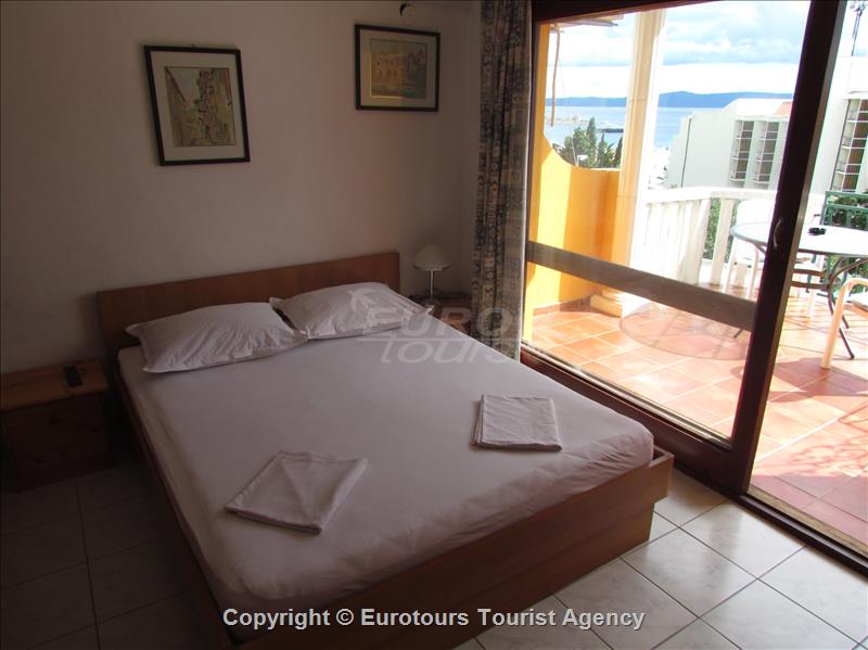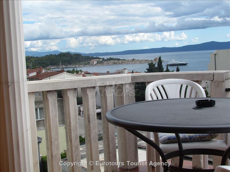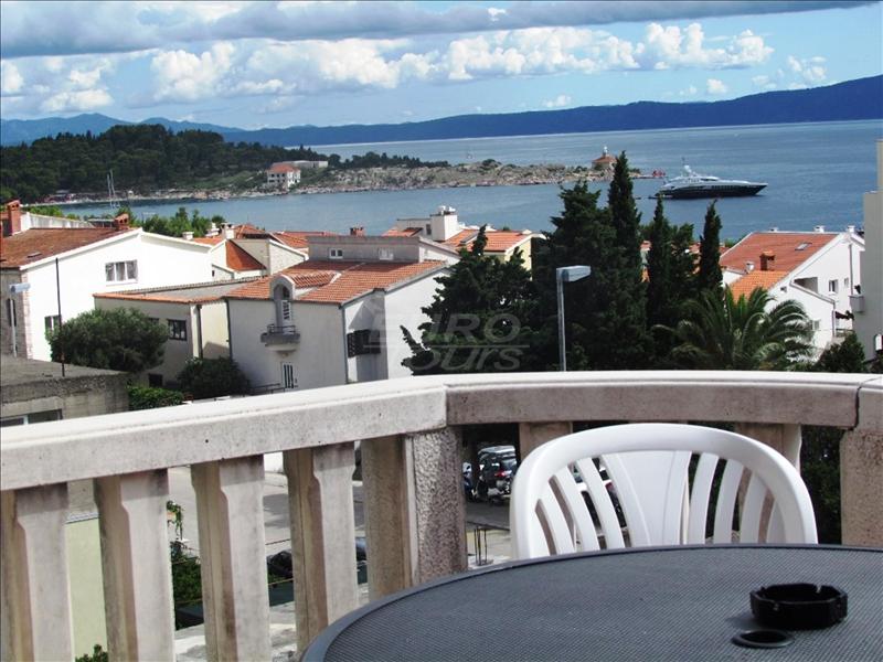The apartment on 2 nd floor, has one bedroom, private bathroom, full equipped kitchentte, spacious balcony where from you will enjoy a wonderful view of the sea, beach bay and islands Hvar and Brač.