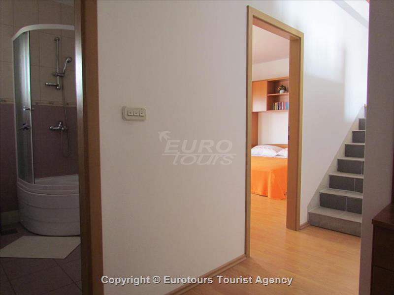 Spacious family house with 2 duplex apartments, only 100m from longest Makarska beach.Apartments are positioned in the center of Makarska town. In the vicinity you will find many good restaurants, coffee bars, supermarkets, shops and some of the city’s most famous attractions. Each apartment is on 2 floors, downstairs is one double room with bathroom and balcony and on the gallery is dining part. apartments has air condition, modern furnishings and sea view. Parking place is at the guests disposal.