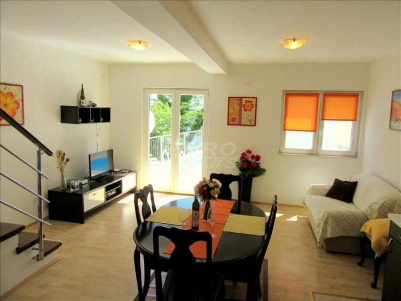 Holiday house Lina with pool and beautiful sea view is located in a quiet location, between the mountain Biokovo Nature Park and the coastal village Tucepi. It consists of two floors, has 2 bedrooms, a living room with a kitchen, a bathroom and a hallway. The air conditioning is in the hallway for two bedrooms, both overlooking the sea. The living room has a sofa bed. The kitchen has all the facilities you could need for a pleasant holiday.