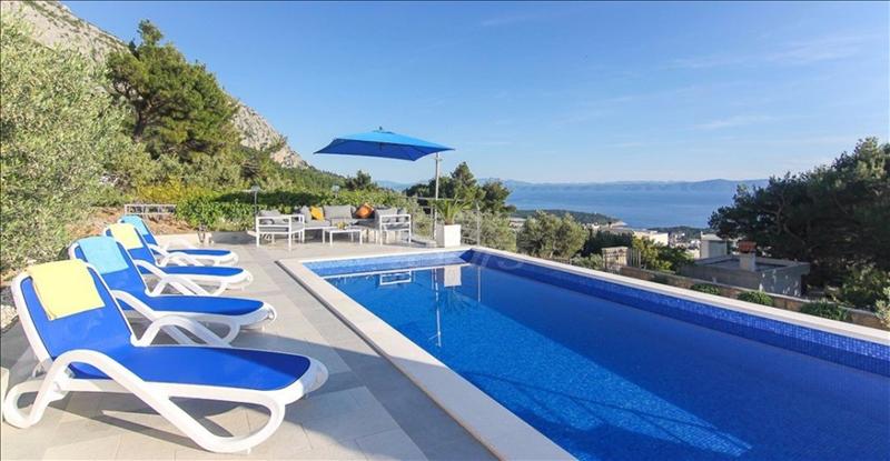 With a wonderful panoramic view of the sea, the islands, the mountain and the city of Makarska Villa Nolita offers peace and true idyll surrounded by olives and pine trees.This house and its location is ideal for a vacation with family and friends.