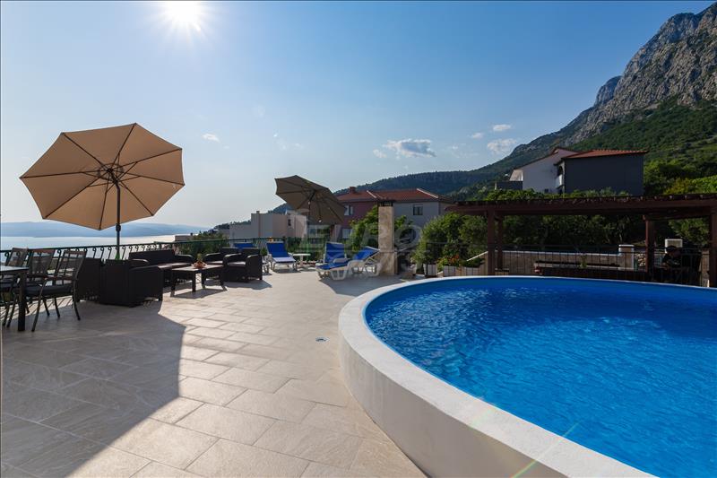 The 50 sqm large terrace is an oasis of well being and will provide you with relaxing atmosphere while you are laying on the sundecks or tasting local wine and food prepared on grill. From there you can enjoy the breathtaking panorama of the sea, islands of Hvar, Brač valley and mountain Biokovo.