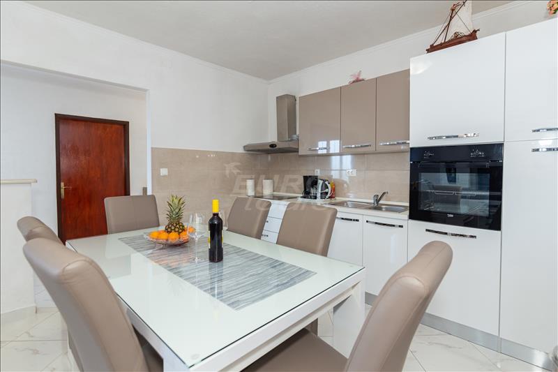 Spread on 200 qm, holiday house Navis offers four bedrooms, three bathrooms, two kitchen with dining area and living room with balcony. You will love fantastic view of Dalmatian coast and islands - Hvar, Korcula, Brac, Pelješac. Designed in autohtonic Dalmatian style the house is set on a peaceful and quiet hill area, 2 km far from the city and beaches of Makarska. Suitable to accommodate 7 persons, two-story house creates the perfect ambience for relaxation and a peaceful holiday.