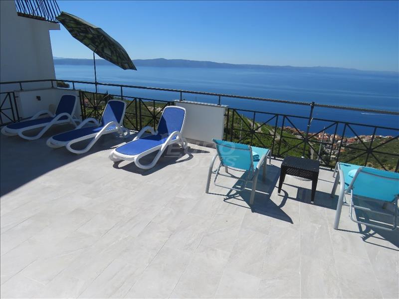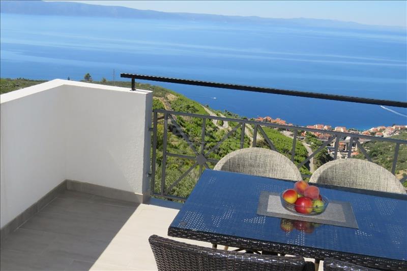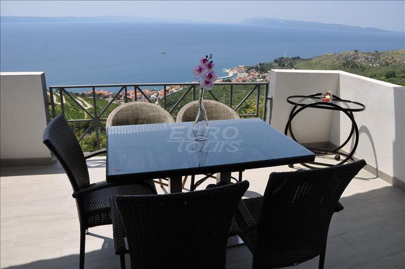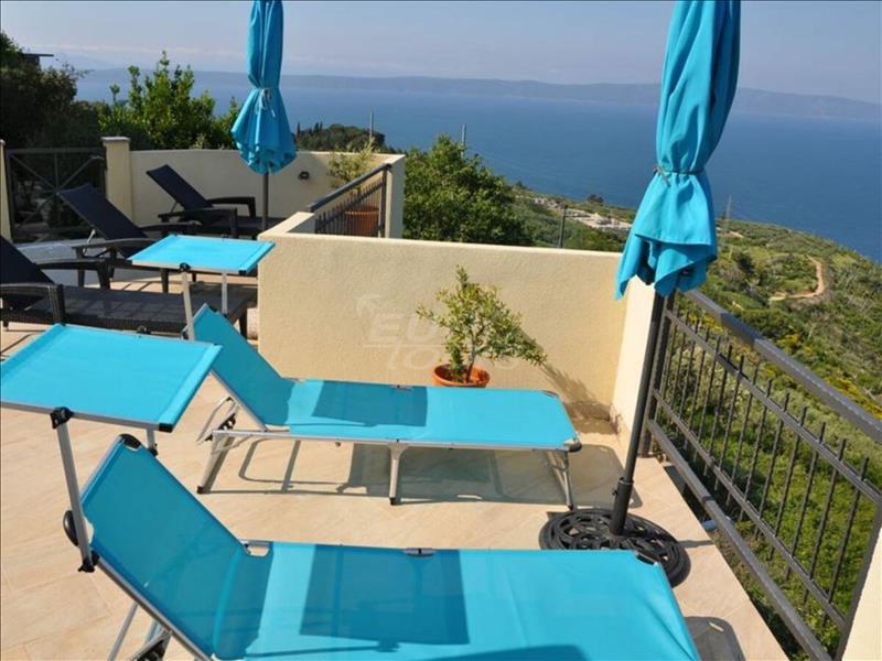 Private pool on the terrace invites you to a relaxing holiday in privacy. Magnificent views of the resort, sea and islands are fantastic. The pool area has sun beds and garden furniture to relax with a glass of wine.
