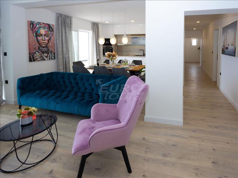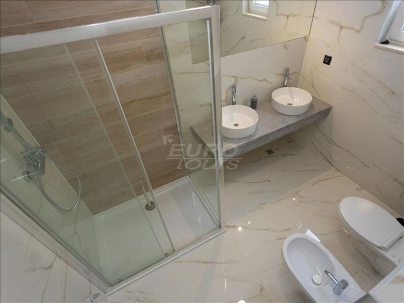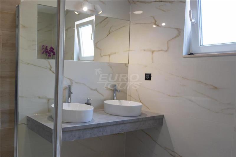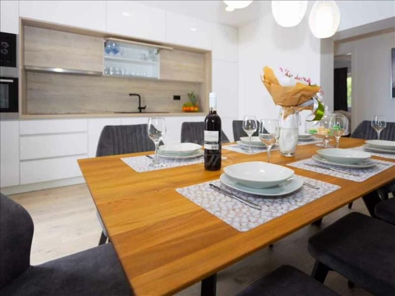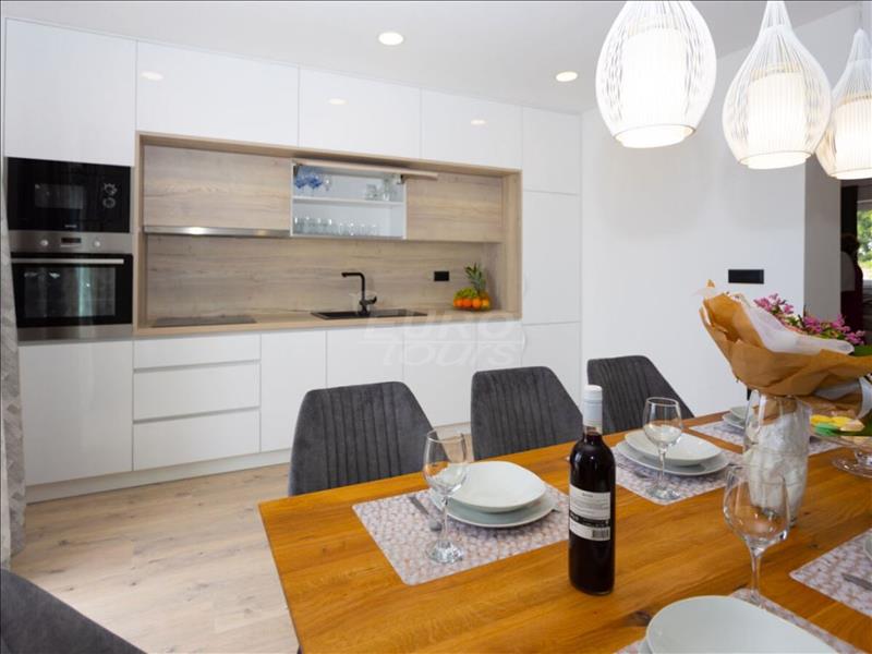 In front of the house there is a spacious terrace with a private pool and jacuzzi, as well as the sun loungers. Here you can enjoy beautiful views while you are sunbathing. There is a children's playground and a soccer field behind the house. There is also an outdoor dining table and a grill for joyful frends and family gatherings. House has 3-4 parking spaces.