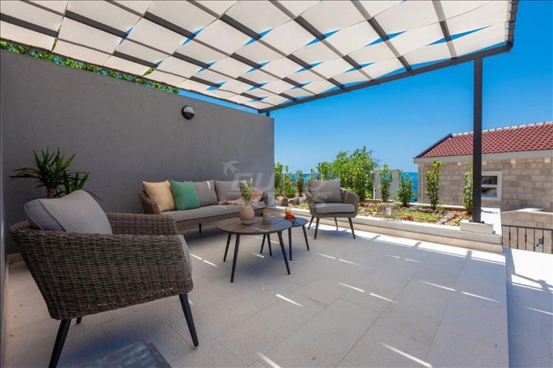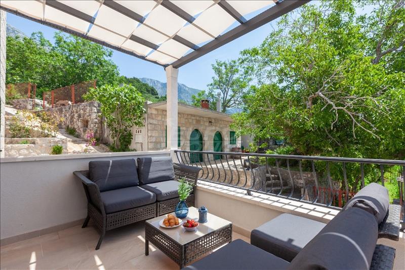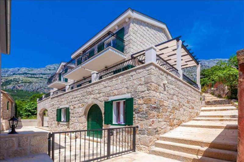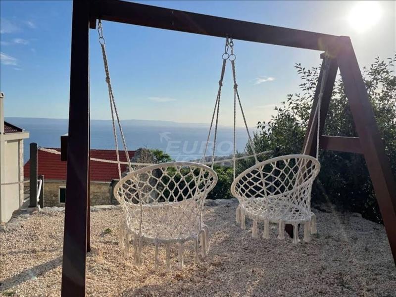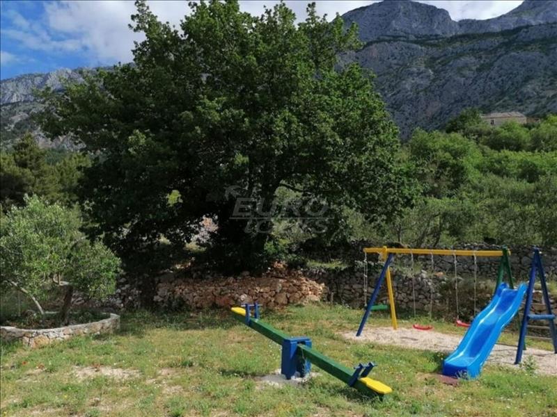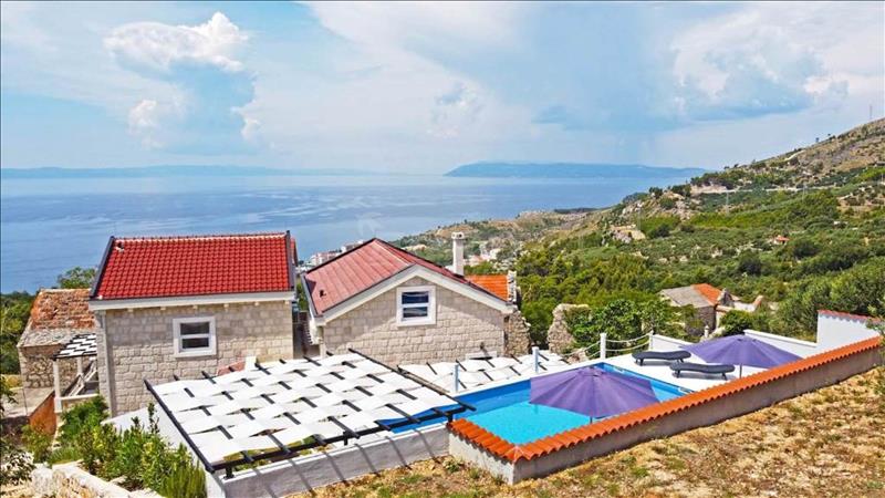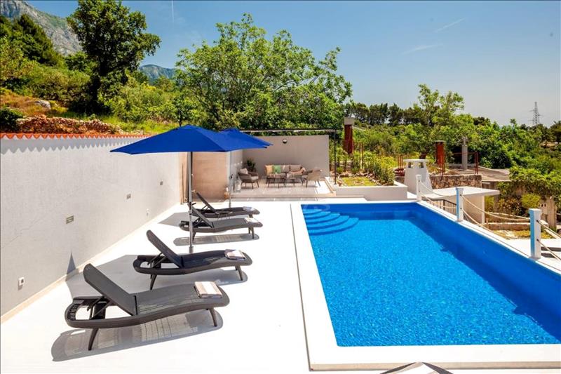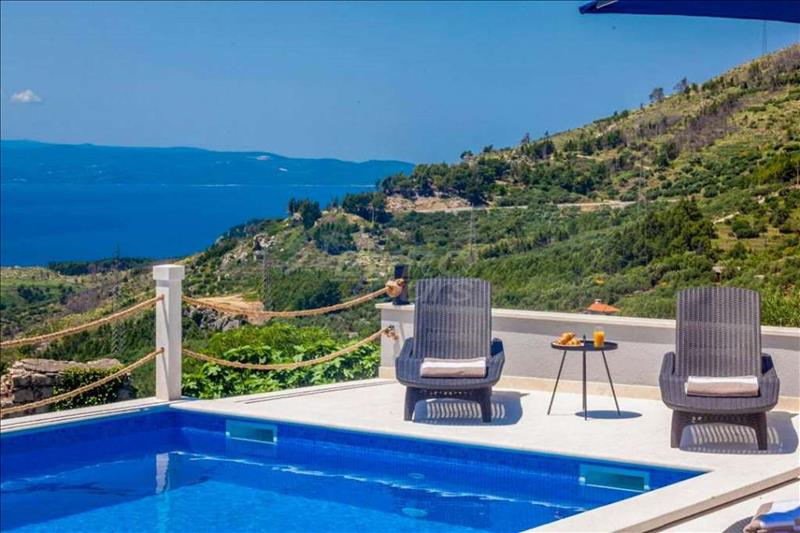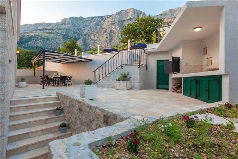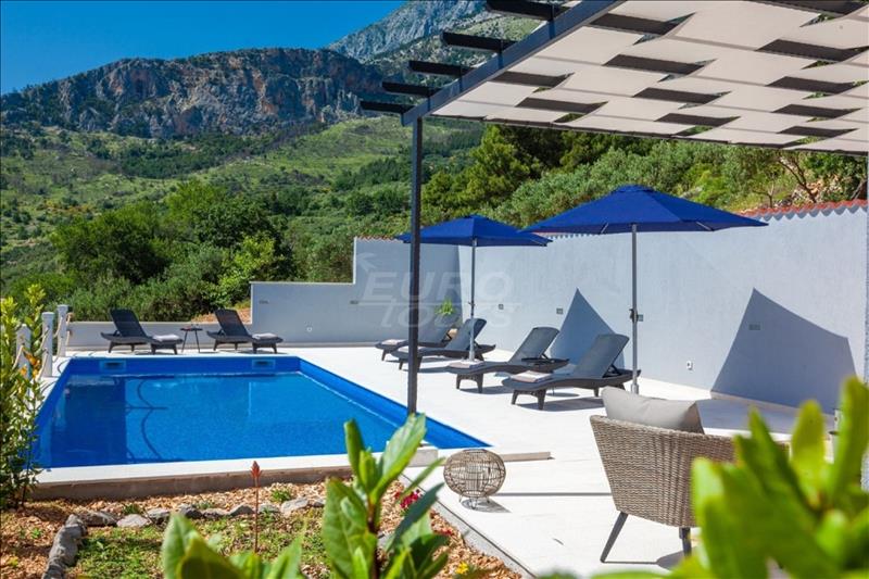 The house extends over 400 m² with a spacious terrace area and a fantastic heated swimming pool. Peaceful location in the untouched nature between the Adriatic Sea and Biokovo Mountain - close to the Skywalk viewpoint. Guests have at their disposal a heated pool, BBQ, lounge area, sun terrace and bedrooms with seaview.