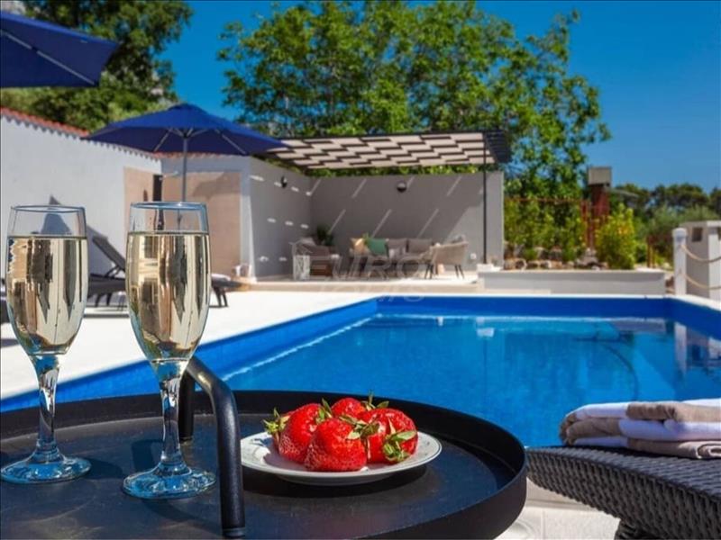 For guests' leisure and pleasure, the villa has a beautiful pool (36 m2) with heating. Sunbathe on the sun loungers in a beautiful Dalmatian environment of olive groves, pine trees, Mediterranean fruits and authentic herbs. Take a rest, be our guest. Welcome!