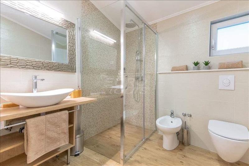 The house villa Paola consists of ground floor and first floor, where there are 2 bedrooms, one with double bed and one triple room, 4 bathrooms, 3 with shower and one with bathtub.